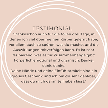 "Was mir besonders gut gefallen hat: spielerisch, bildhaft, kreativ, authentisch und kompetent und kompakt die Anatomie, Geschichte die Theorie und Praxis/ Übungen nicht nur für „ Laien" so abwechslungsreich rüberzubringen, dass es nicht nur verständlich aber auch „für den eigenen Verstand" greifbar ist. Man lernt der eigenen Wahrnehmung zu vertrauen, die Signale des Körpers besser deuten zu können und achtsam mit sich selbst umzugehen und aktiv an der eigenen Gesundheit mitzuwirken." Eva